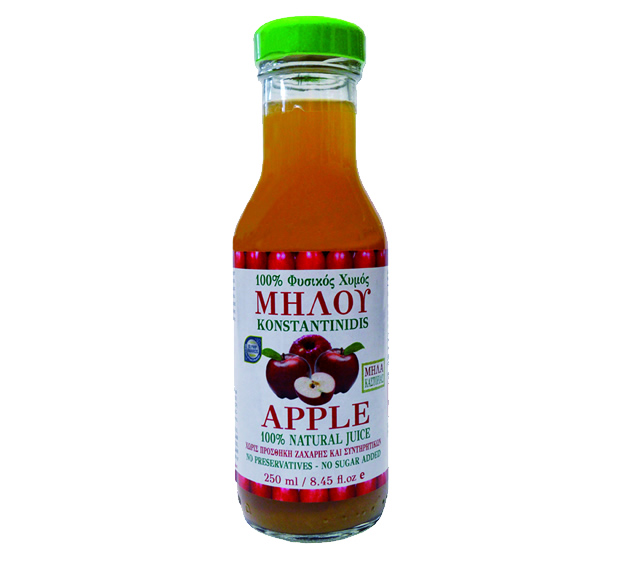 100% φυσικός χυμός μήλου σε συσκευασία γυάλινη 250ml.